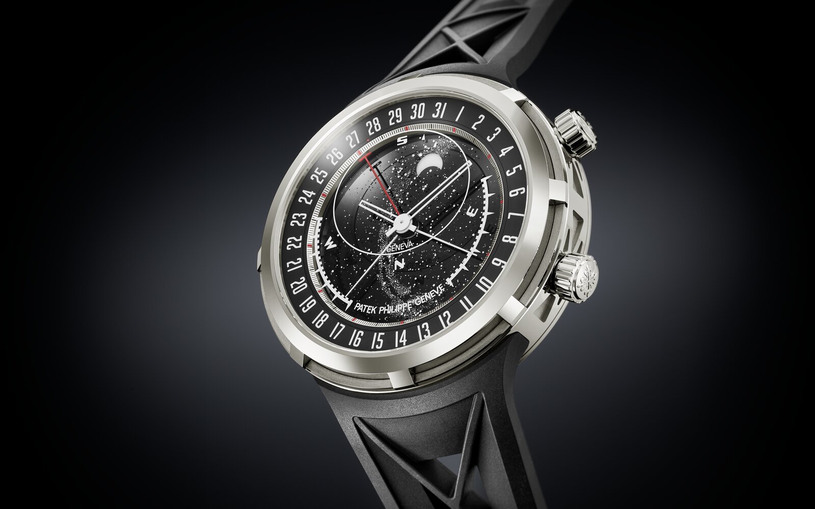 Patek Philippe has spent five years building a wristwatch that shows you when the sun will come up and when it will set. The result, revealed at Watches and Wonders 2026 under reference 6105G-001, is a 47mm white gold Celestial with a black composite strap and a movement that packs six patents into a 7.93mm base calibre.